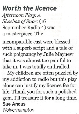 “Beautiful, poignant and a privilege to listen to” Jane Anderson, Radio Times